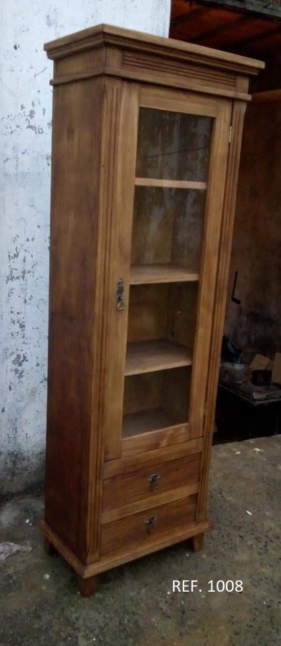 Descrição: 1 Porta, Lateral madeira, prateleiras madeira, 2 gavetas