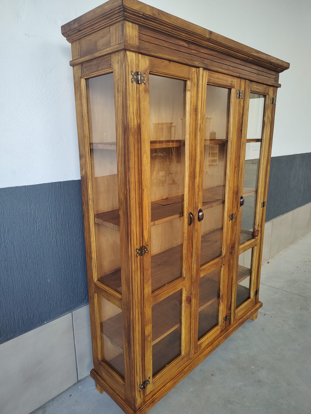Descrição: 3 Portas, Lateral Vidro, Prateleiras madeira