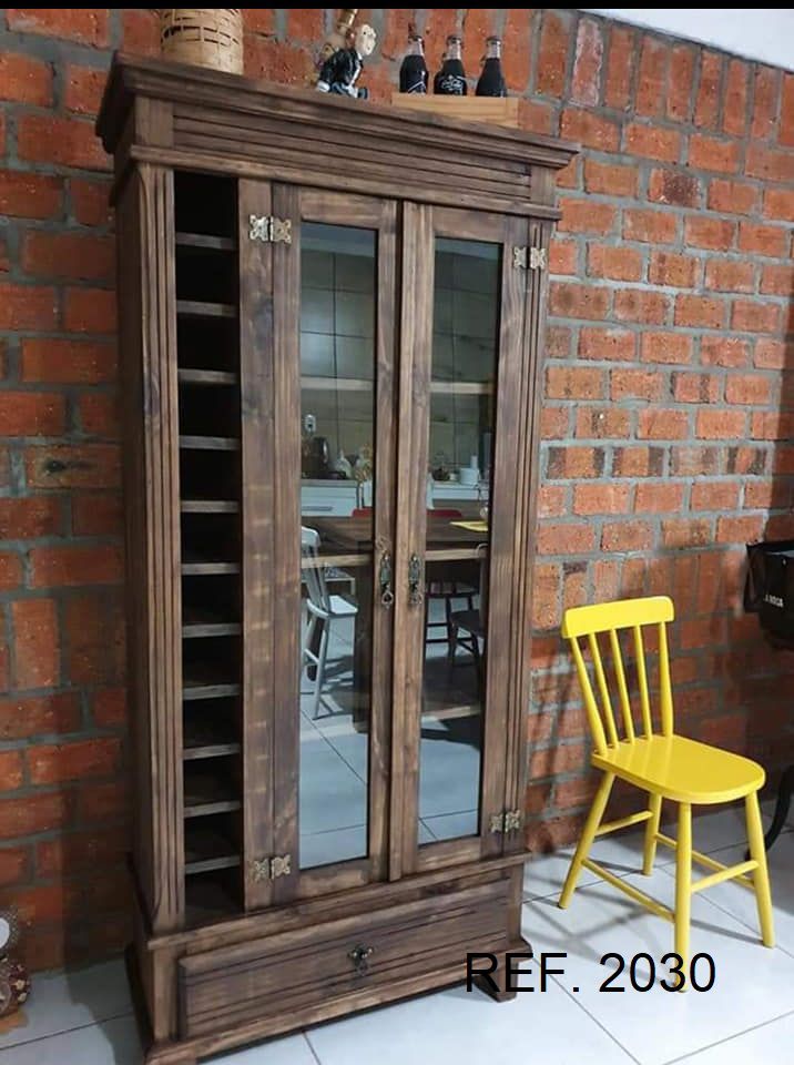 Descrição: 2 Portas, Laterais de Madeira, Prateleiras madeira, com adega lateral e 1 gaveta.
