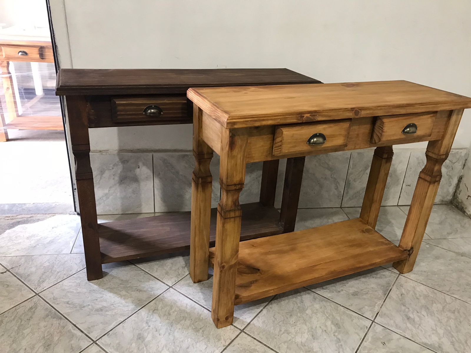 Descrição: Aparador tampo duplo, 2 gavetas, pés robustos.